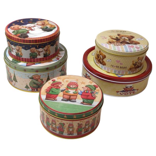 Holiday Gift Packaging Metal Tin Box Reusable Round Tin Cookie Containers Custom Dollar Tree Cookie Tins Images |